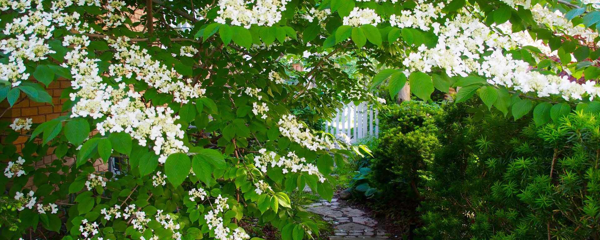 My favourites are the doublefile viburnums, viburnum plicatum var. tomentosum. They grow into beautiful tiered layers like a japanese pagoda with pure white lacecap flowers icing every branch.